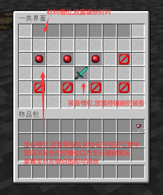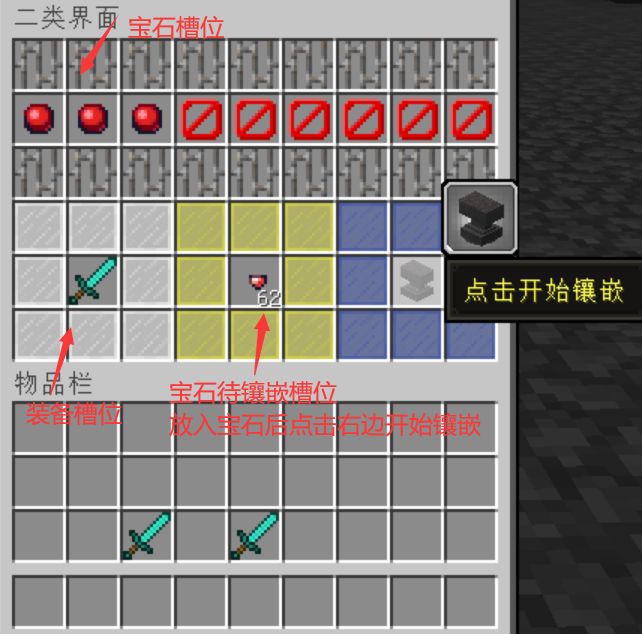 - 这里设置可以影响宝石镶嵌成功率的物品,放置在材料槽位